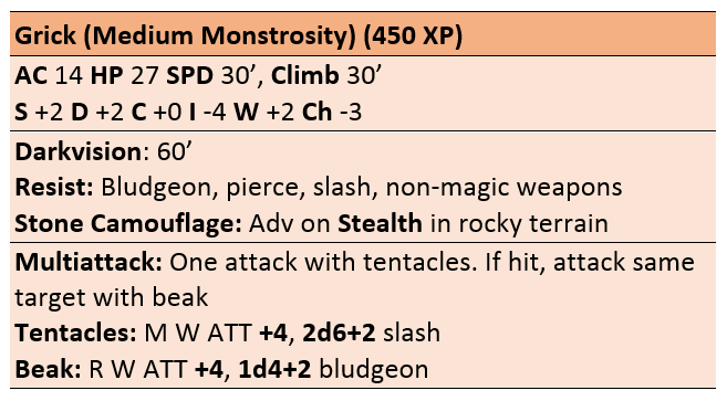 So, here’s the million dollar question. Can we abbreviate a 5E stat block? Can we shrink it enough to fit it inline with the text. Or at least, for our personal use, can we shrink it enough to make it quick work to type up and jam ten of them on a page so we can have all of our monsters handy on one or two sheets?