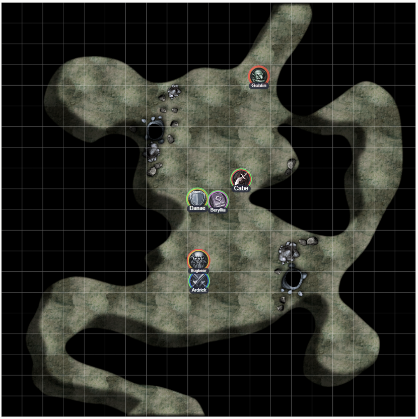 “The bugbear and Ardrick remain locked in mortal combat, both fighters sagging from the punishment they’ve taken. Cabe is dashing to join the fray. The goblin has lost his will to fight and is staring, terrified, at Danae. What does she do, Danielle?”