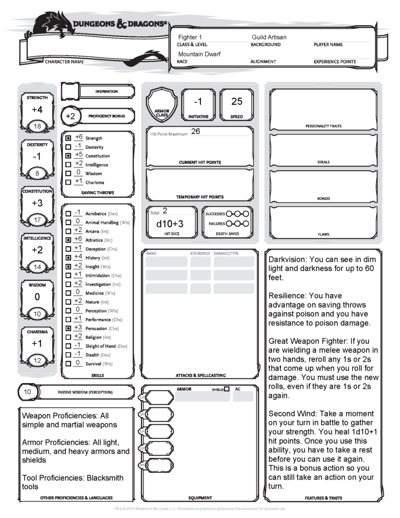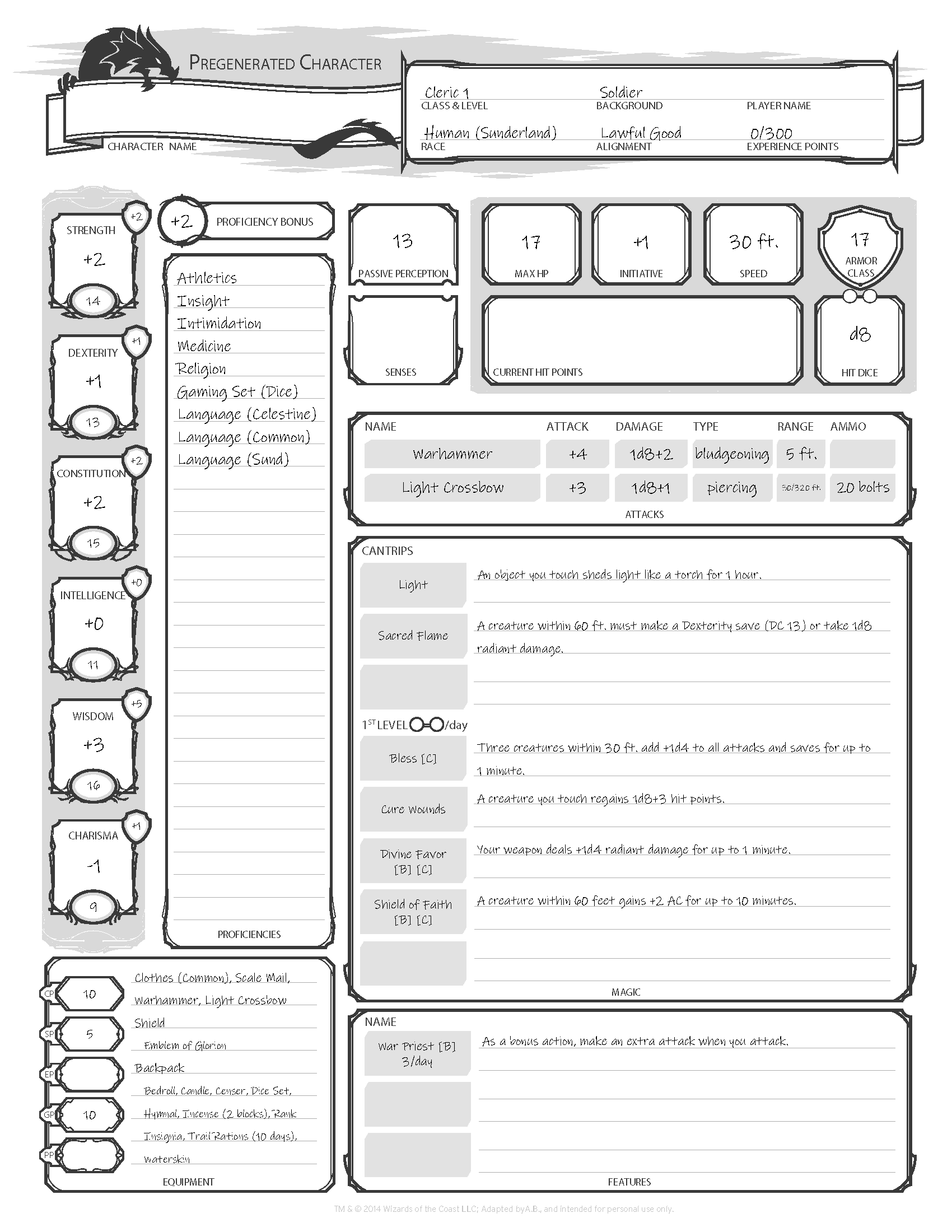 2. Wew, that character sheet sure cleans up nicely once you get rid of a lot of stuff that a first time player wouldn’t need for a one-shot learn to play module or any of the stuff that you almost never use. I am missing weapon proficiencies though, but I guess it might not come up in your adventure.