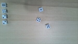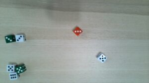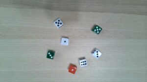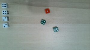 Do you like rolling a whole bunch of dice? Do you have a bunch of d6s? Great! You can build a Dicey Trove the Angry Way. Which’ll look complicated at first, but actually goes very quickly. It takes about ten minutes to build a Trove. Especially if you’ve got ten or twenty six-siders sitting around. Especially especially if you’ve got a few distinct colors or styles to work with. You’ll need three or four d-sixers in two different colors or styles to distinguish them from the rest to do this the easy way. Otherwise, you’ll have to make some sequential rolls.