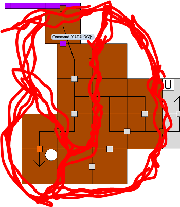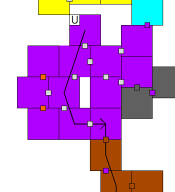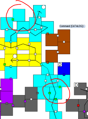 Is this all starting to sound familiar? Connecting a bunch of boxes with little doors while overthinking the players’ behavior to the point of absurdity? That is the very essence of the Megadungeon. At the very least, that’s the very essence of these design blogs. But if we don’t speed this up, we’re going to be doing this exit map thing for three more weeks. The problem is, it’s actually a lot quicker to do this than write about it. For example, I went from this: