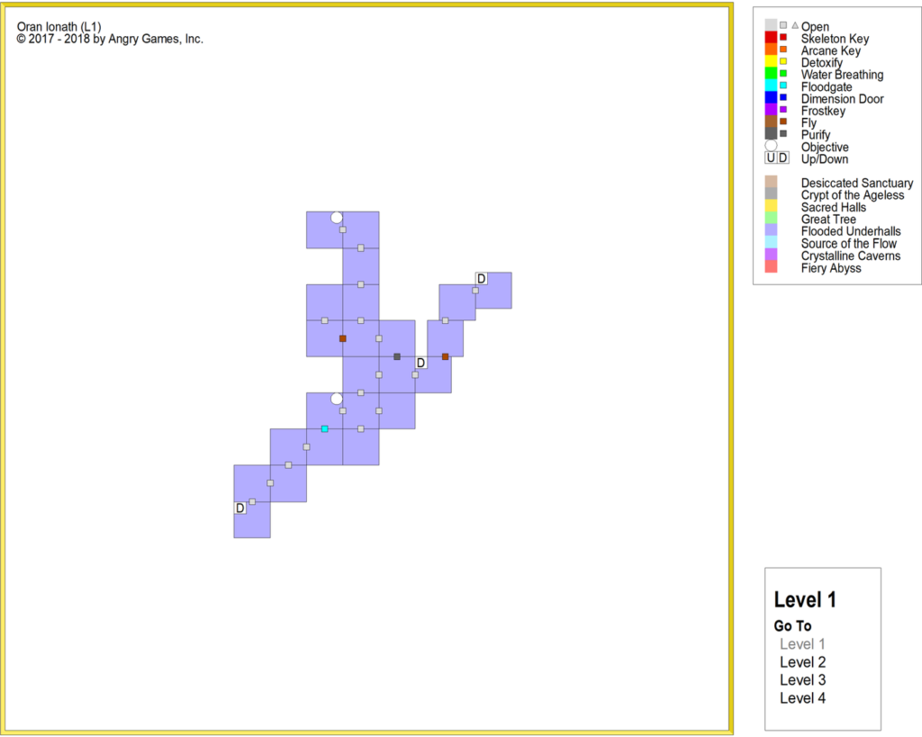 We have these flooded sections of the dungeon, and we don’t want the party exploring them while they are flooded. But we also have an artifact that will allow the party to breathe underwater. And we will be including flooded passageways that the party CAN explore once they can breathe underwater. And that creates a tricky problem. What if the party uses the water breathing relic to try to explore the flooded portions of the dungeon?