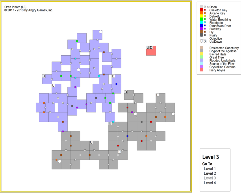 The party won’t return to Level 3 until Day 10. They will be able to explore this area after destroying the poisonous plant brain and defeating the kobold queen. Here, they will find the relic that allows them to breathe underwater. They will also find entrances to two other areas, Day 14 and Day 15, that are both flooded. And this forces us to confront a problem we highlighted a long time ago when we were first talking about gating.