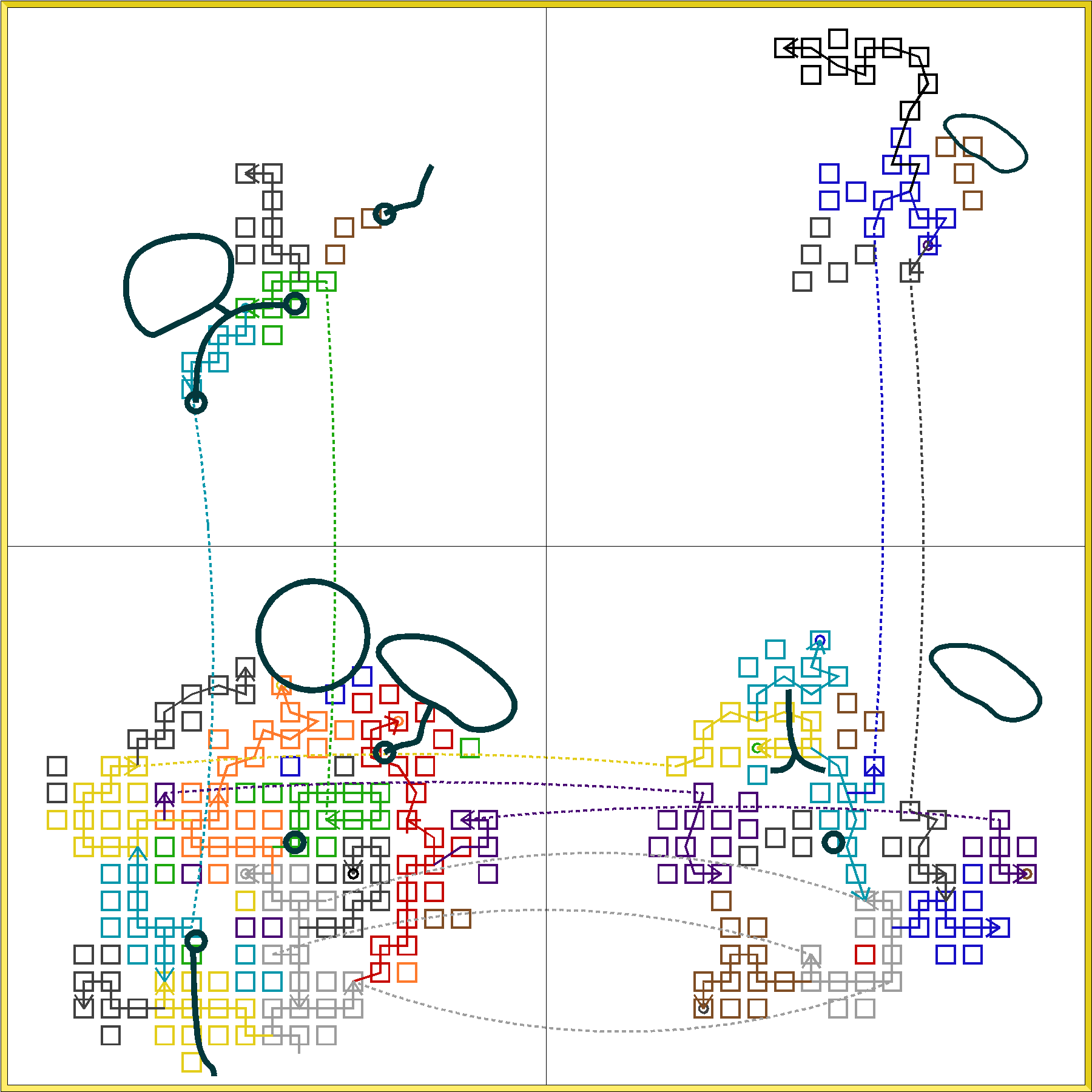 If you’re attentive, you’ll notice a map key in the upper right corner. That key also provides little symbols for color-coded doors. Those are just informational doors. Because once the whole dungeon is in there, my plan is to build the exit map. And that will be a map of the traffic flow through the entire dungeon. And then I can turn OFF the “days of adventure” underlay because I no longer need that. That information will be subsumed in the exit map. Instead, I can focus on designing the “dungeon regions.”