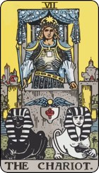 This is ominous. Yeah, I know it looks all triumphant and paradey and s$&%. But this is a vehicle of war. Pulled by powerful animals. With an armored knight on it. The card usually represents victory, but the thing is, the chariot’s hard to control. It’s pulled by two differently-colored animals. Two different forces. If they don’t pull in the same direction, the Chariot doesn’t go anywhere. The driver’s will keeps the animals under control.